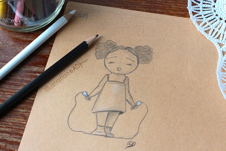 Illustrations faites au crayon sur papier ou peintes sur toile.
